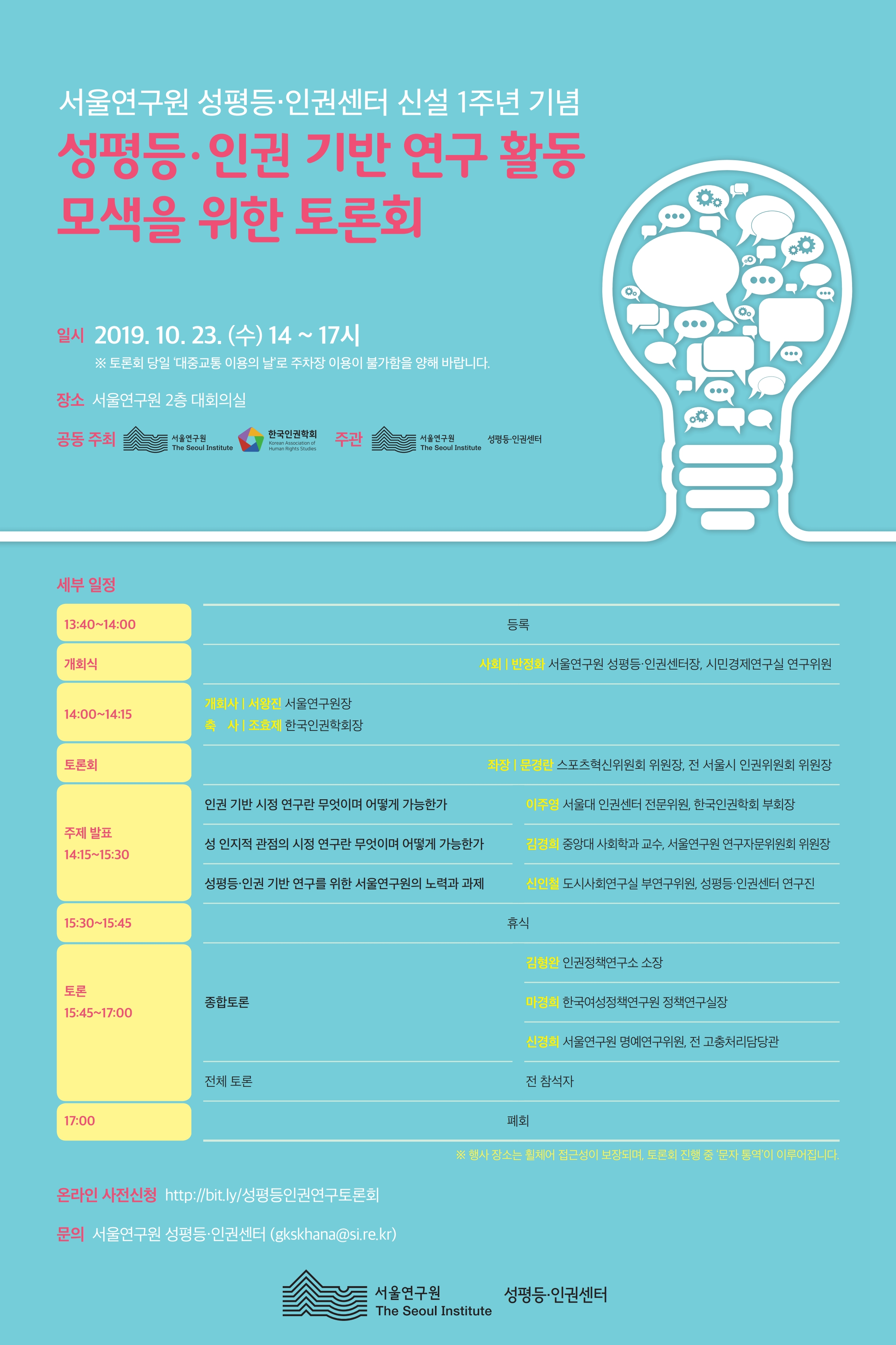 - [서울연구원] 성평등 · 인권 기반 연구 활동 모색을 위한 토론회 홍보 및 참석 협조 요청