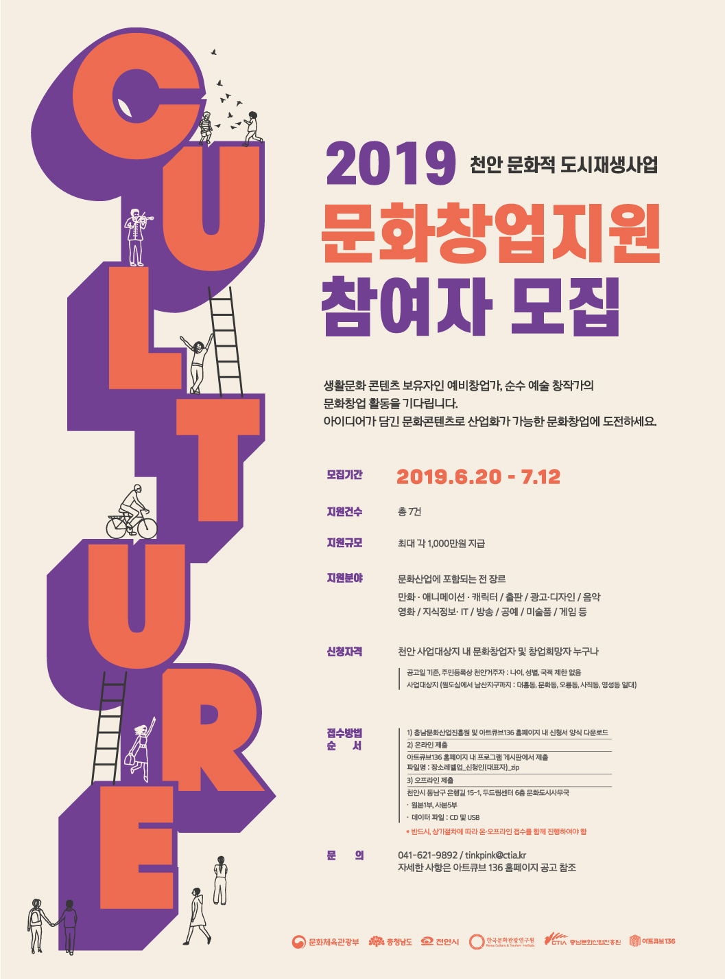 - [충남문화산업진흥원] 「2019 천안 문화적 도시재생사업」 문화창업지원 참여자 모집 연장 공고