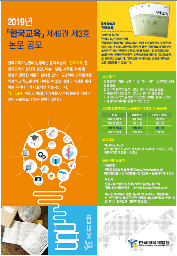 - [한국교육개발원] 등재학술지 한국교육 제46권 제3호 게재논문 공모 안내
