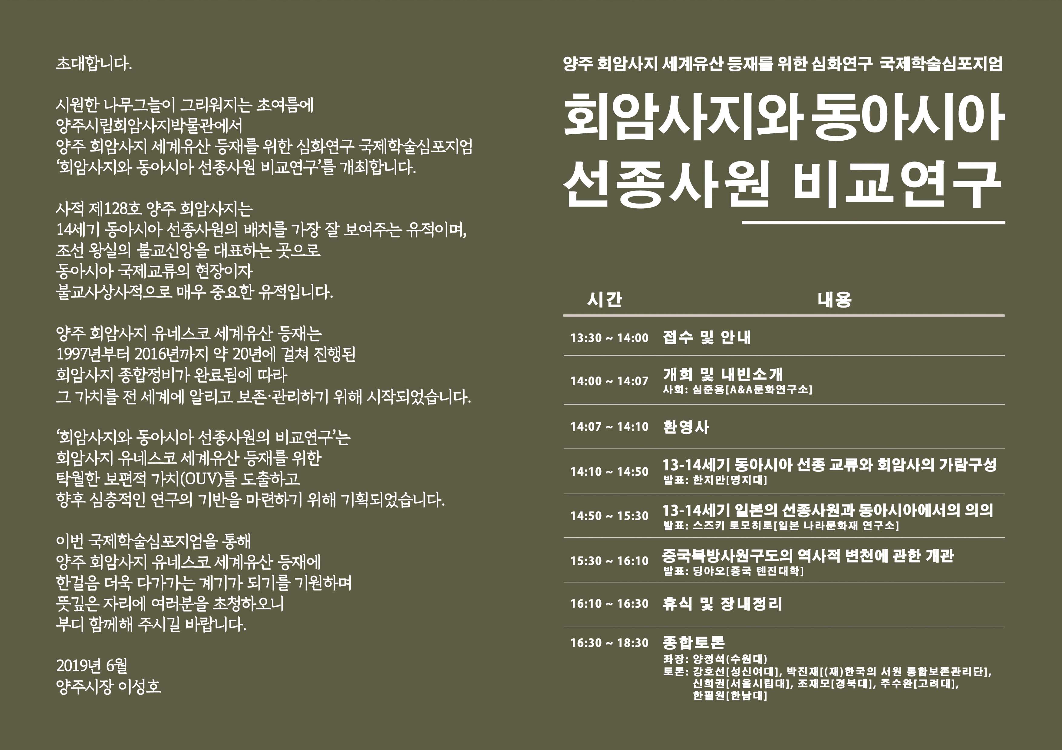 - [양주시] 양주 회암사지 세계유산 등재를 위한 국제학술심포지엄 개최 알림 및 참석 요청