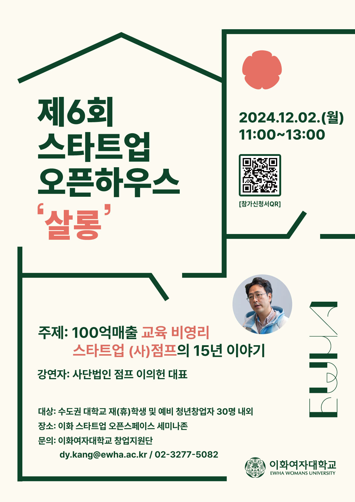 | 상명 [진로취업] | [이화여자대학교 창업지원단] 「2024 제6회 스타트업 오픈 하우스 살롱」 참여 대학(원)생 모집 |