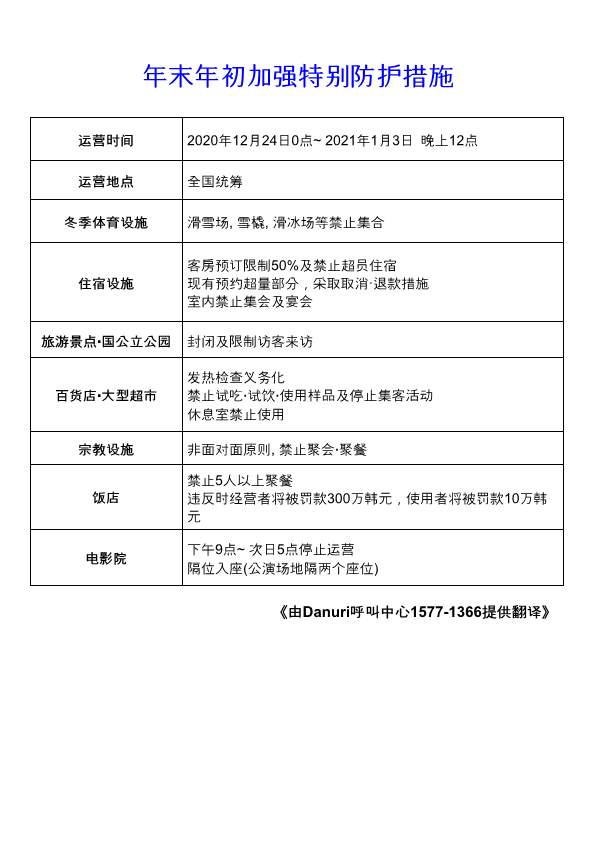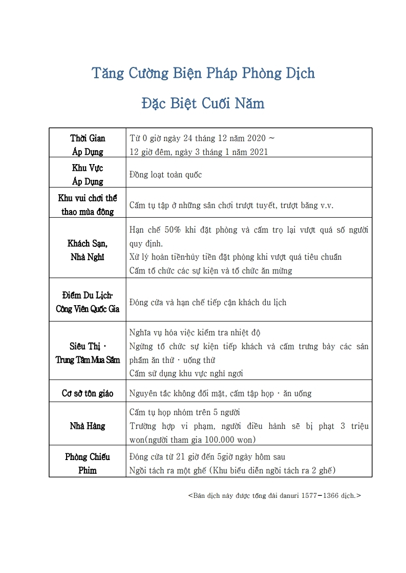 - [생활] 코로나19 관련 연말연시 특별방역 강화 조치(한국어/중국어/베트남어)