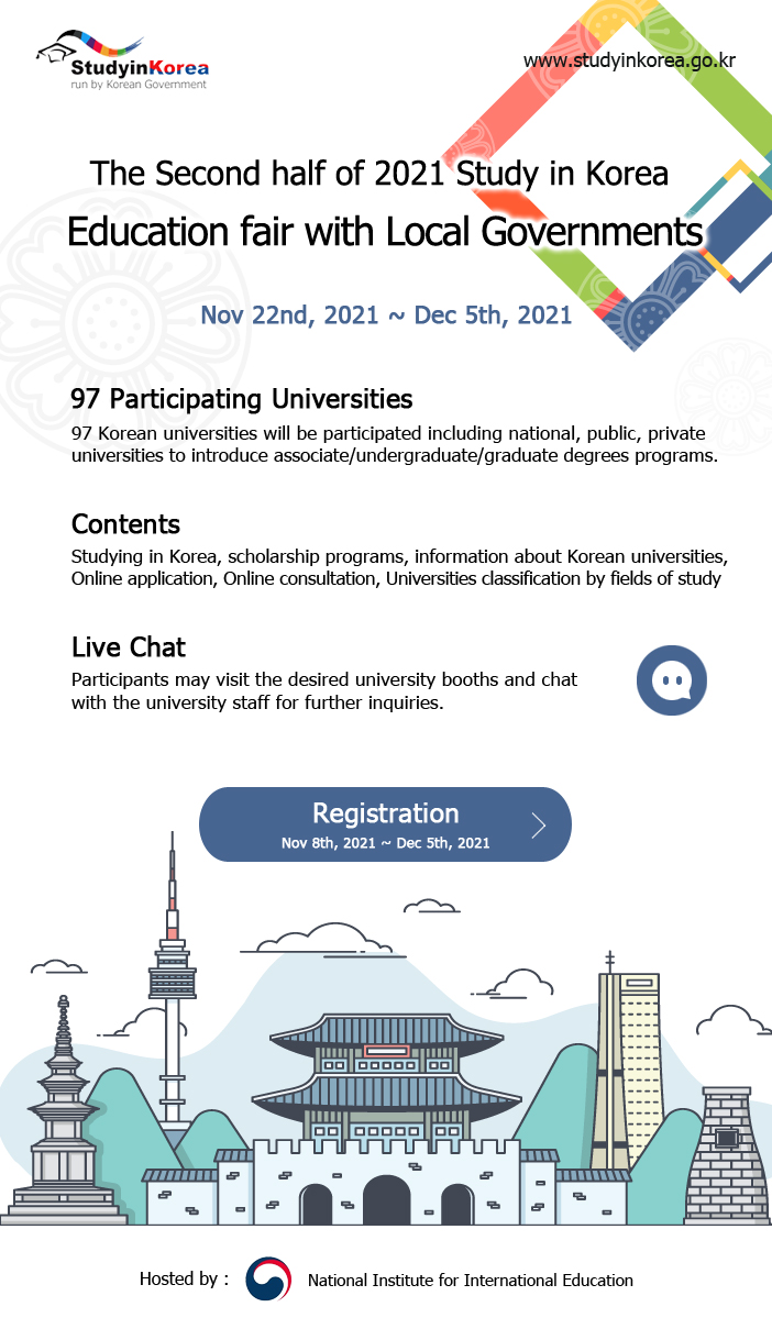 - [국립국제교육원] 2021 지자체와 함께하는 한국유학박람회 (www.studyinkorea.go.kr) 안내